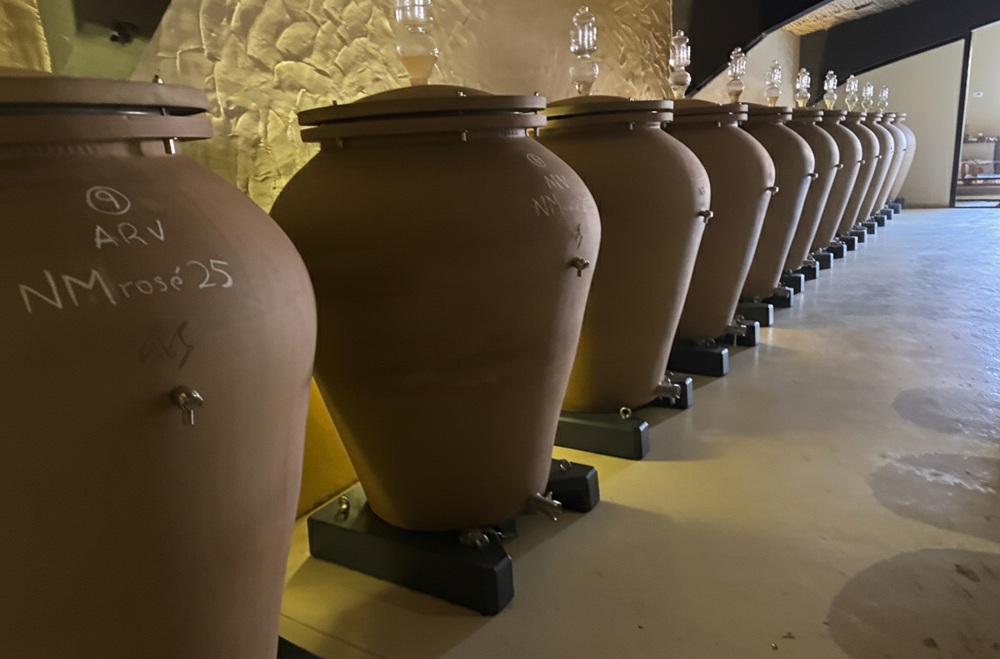 As the Algarve Wineries develop and improve their visitor offerings, Arvad is a relative newcomer making waves in Algarve wine. The estate sits on a hill near the historic town of Silves. It’s spectacular views overlook a bend in the River Arade. Arvad takes its name from the Phoenicians, who first sailed up the river with amphorae, clay pots. The producer uses 23 Sicilian amphorae to make wine under the guidance of oenologist Bernardo Cabral. From the river, electric buggies bring visitors to the winery and a ‘safari-like’ tasting room where a DJ plays vinyl at sunset.