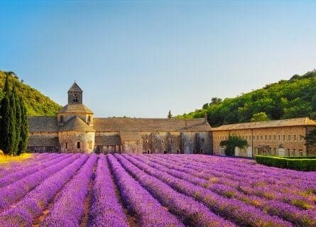 Utterly beautiful Provence is an idyllic vacation destination. Its stunning landscapes, gorgeous fields of lavender, and endless rows of luscious vines make it a visual delight. You’ll fall in love with the fantastic Mediterranean climate and sumptuous wines imbued with striking Roman heritage.